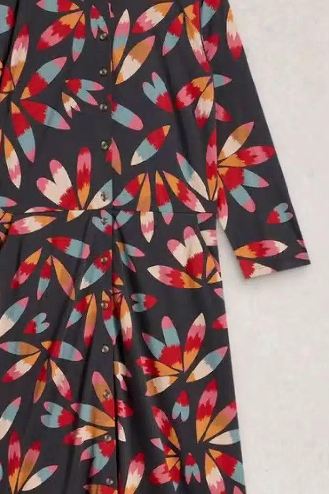 Deze jurk van White Stuff is gemaakt van een hoogwaardige mix van 50% Modal en 50% biologisch katoen. Modal is een duurzaam geproduceerde stof, bekend om zijn zijdezachte textuur en uitstekende ademende eigenschappen. Het gebruik van biologisch katoen ondersteunt milieuvriendelijke landbouwmethoden, waardoor deze jurk niet alleen comfortabel is, maar ook een verantwoorde keuze voor de bewuste consument.