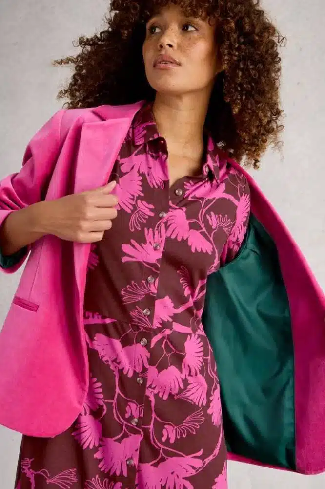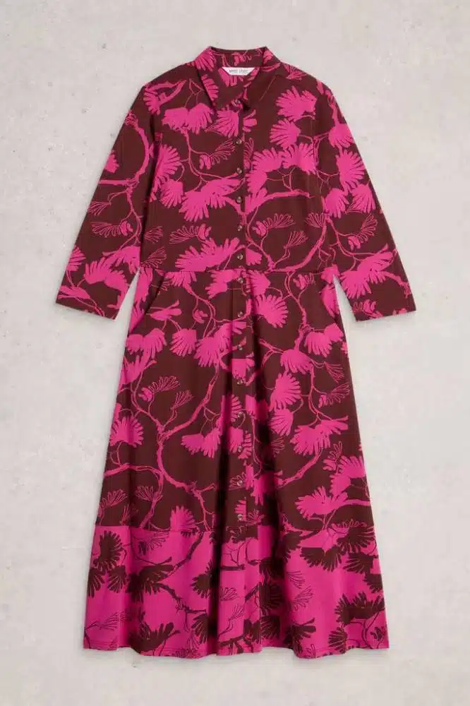 De Rua Jersey Shirt Dress Pink Print van White Stuff is een tijdloze toevoeging aan je garderobe. Deze jurk, met een elegante midi-lengte, combineert moeiteloos stijl en comfort. De 3/4-mouwen en het klassieke overhemdontwerp maken het een veelzijdige keuze voor verschillende gelegenheden. Het zachte, ademende materiaal maakt het ideaal voor dagelijks gebruik, terwijl de opvallende navy print een vleugje verfijning toevoegt.