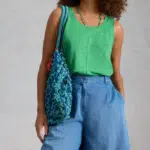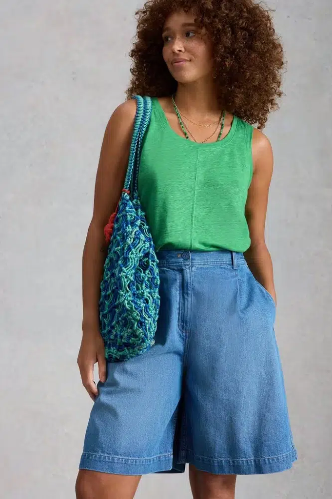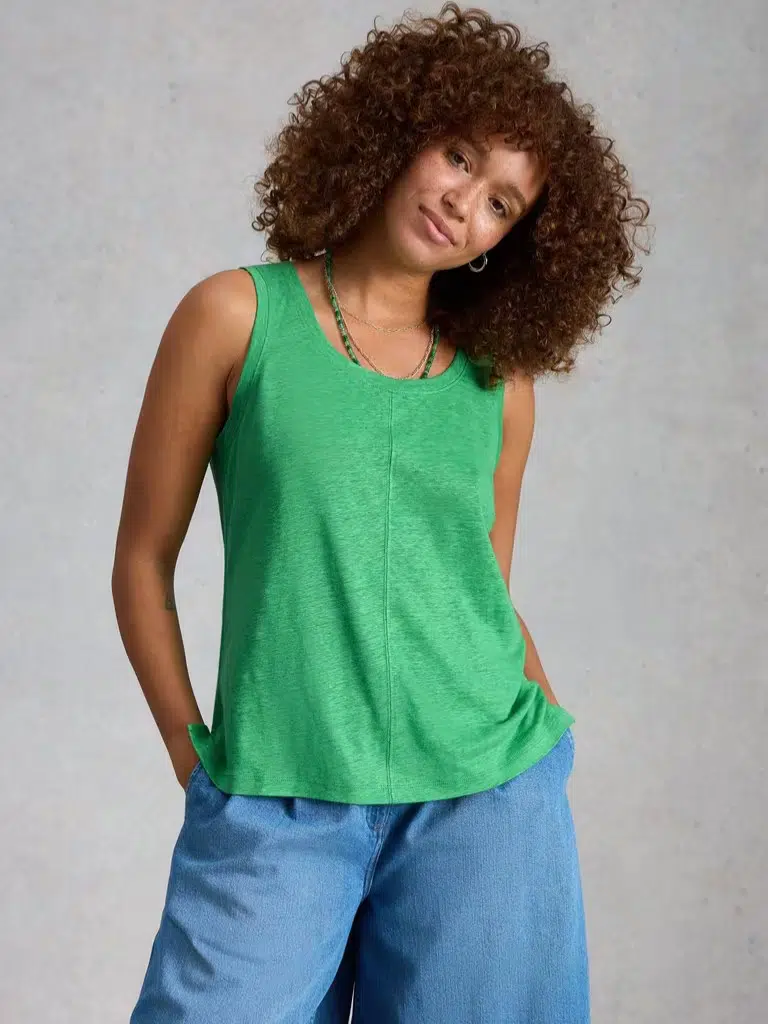 De Scarlette Line Vest is zo’n top die je automatisch pakt zodra het warm wordt. Licht, luchtig en zonder gedoe — precies wat je zoekt op zomerse dagen. White Stuff kiest hier voor 100% linnen, en dat voel je meteen: koel op de huid en prettig ademend.
