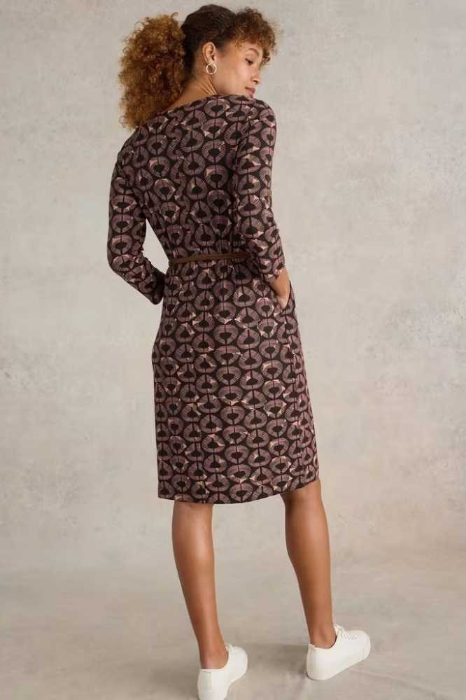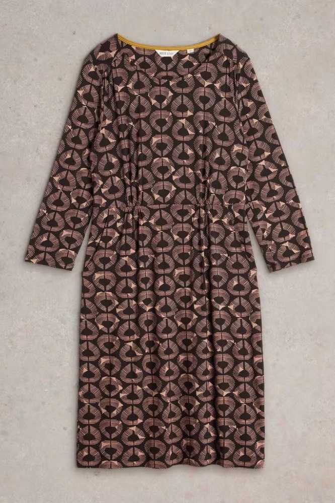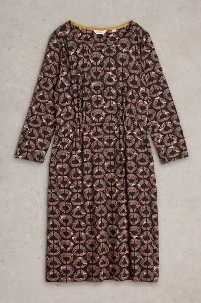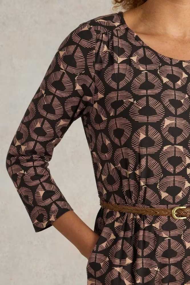De Tallie Eco Vero Jersey Dress Black Print van White Stuff is een stijlvolle en veelzijdige jurk, perfect voor verschillende gelegenheden. De jurk valt net over de knie en heeft een flatterende V-hals, wat zorgt voor een vrouwelijke uitstraling. Het subtiele patroon en de elegante lijnen maken deze jurk een tijdloze toevoeging aan je garderobe. De zachte stof en comfortabele pasvorm zorgen ervoor dat je je de hele dag op je gemak voelt, of je nu op kantoor bent of een dagje uit.
