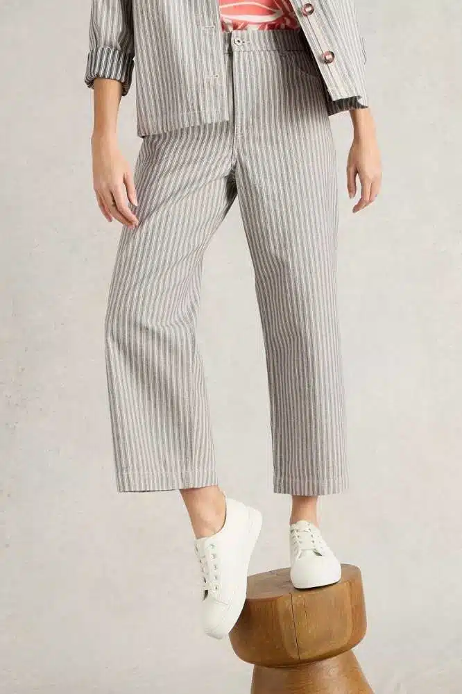 De Tia Wide Leg Crop Jeans van White Stuff is een stijlvolle en comfortabele keuze voor elke garderobe. Met een trendy wijde pijp en een cropped lengte, biedt deze jeans een moderne uitstraling die perfect is om je favoriete schoenen in de spotlight te zetten. De jeans heeft een flatterende pasvorm en een tijdloos design, waardoor je hem seizoen na seizoen kunt dragen.