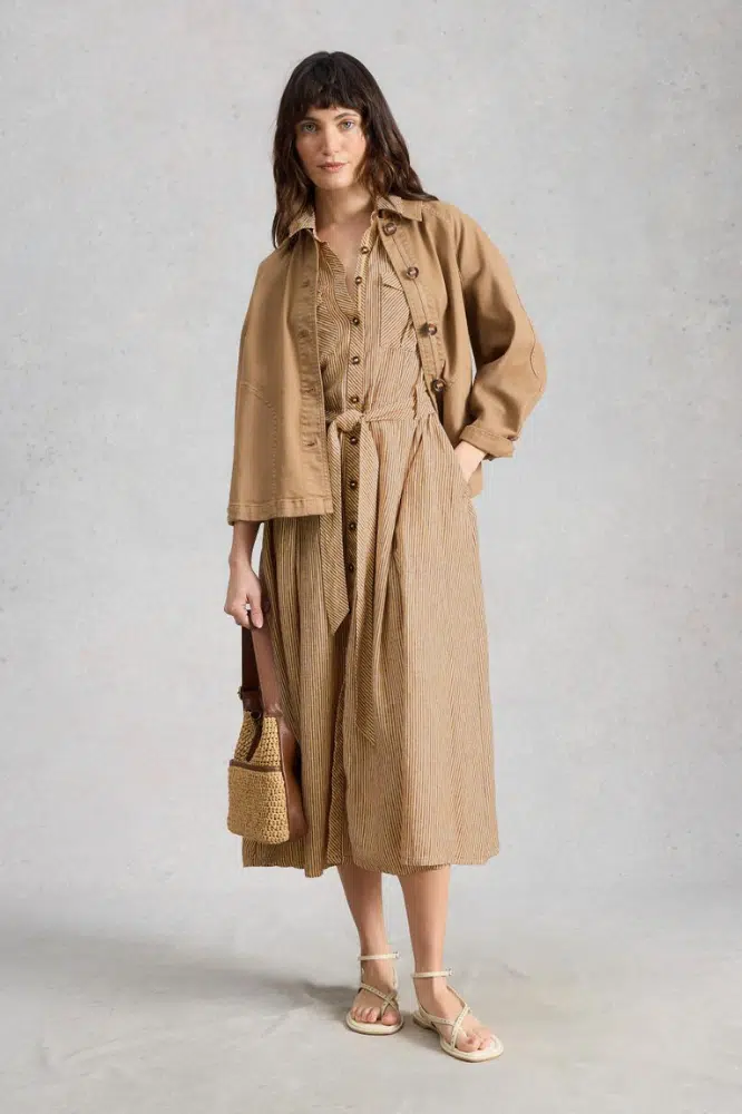 White Stuff staat bekend om comfortabele kleding met natuurlijke materialen en doordachte pasvormen. De Tiff Linen Blend Shirt Dress past perfect binnen die visie: luchtig, draagbaar en ontworpen om vaak te dragen.