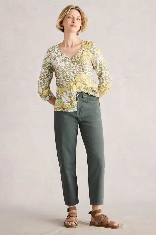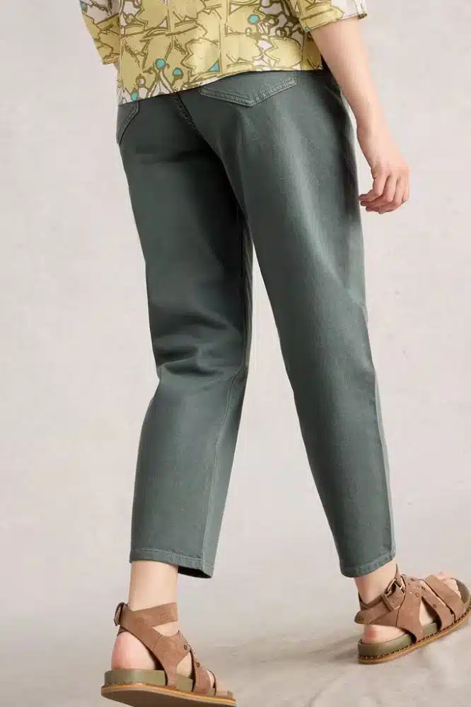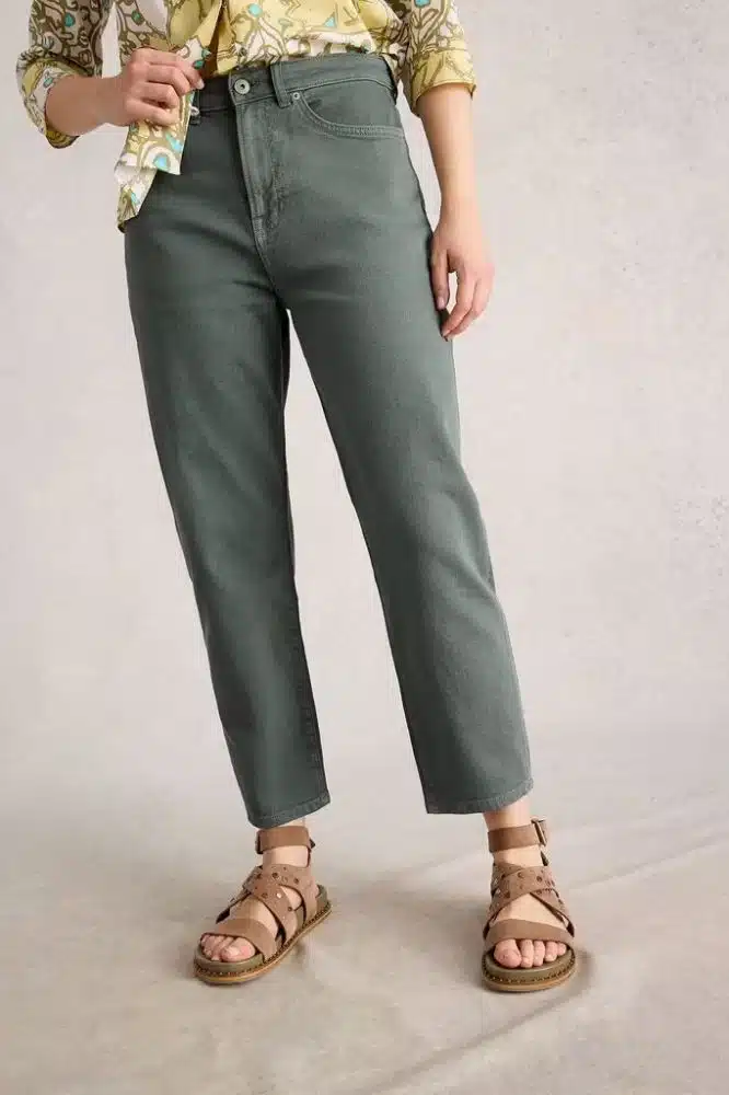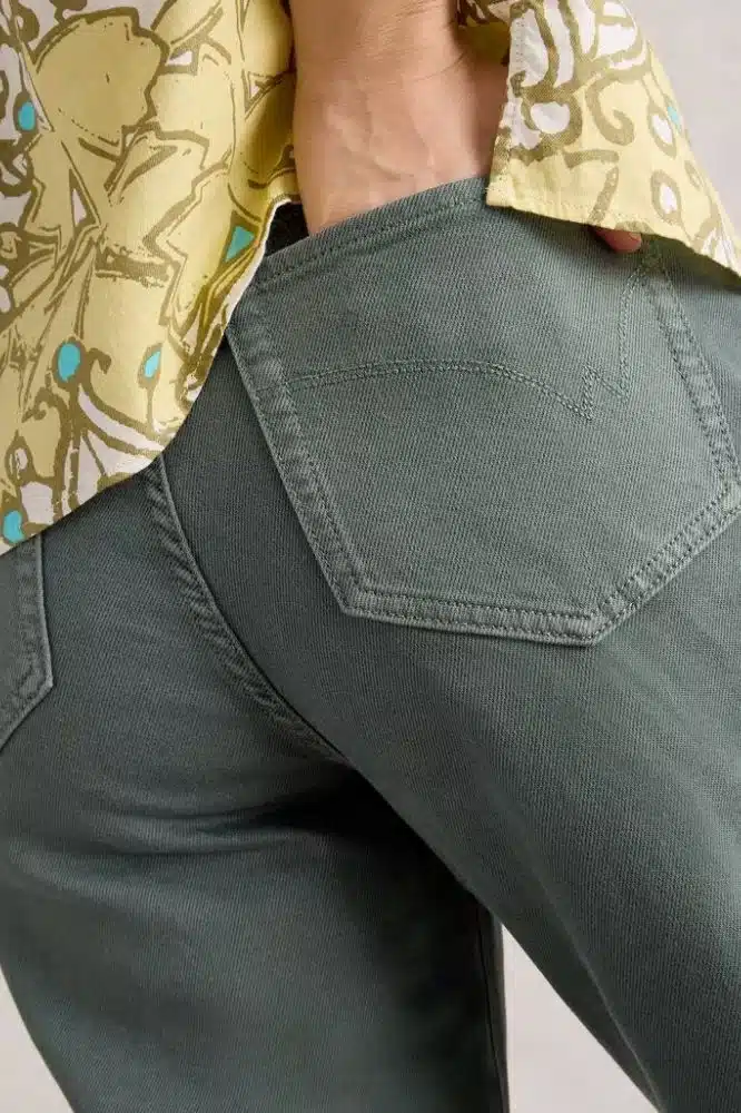 De Tilly Tapered Jeans Mid Green van White Stuff is een veelzijdige broek die stijl en comfort moeiteloos combineert. Met een moderne tapered fit – smal toelopend naar de enkel – en een flatterende enkellengte is deze jeans perfect voor zowel casual outfits als meer geklede combinaties. De frisse midgroene kleur geeft een verrassend modieus accent aan je garderobe en is makkelijk te matchen met neutrale tinten, zachte pastels of juist contrasterende prints.