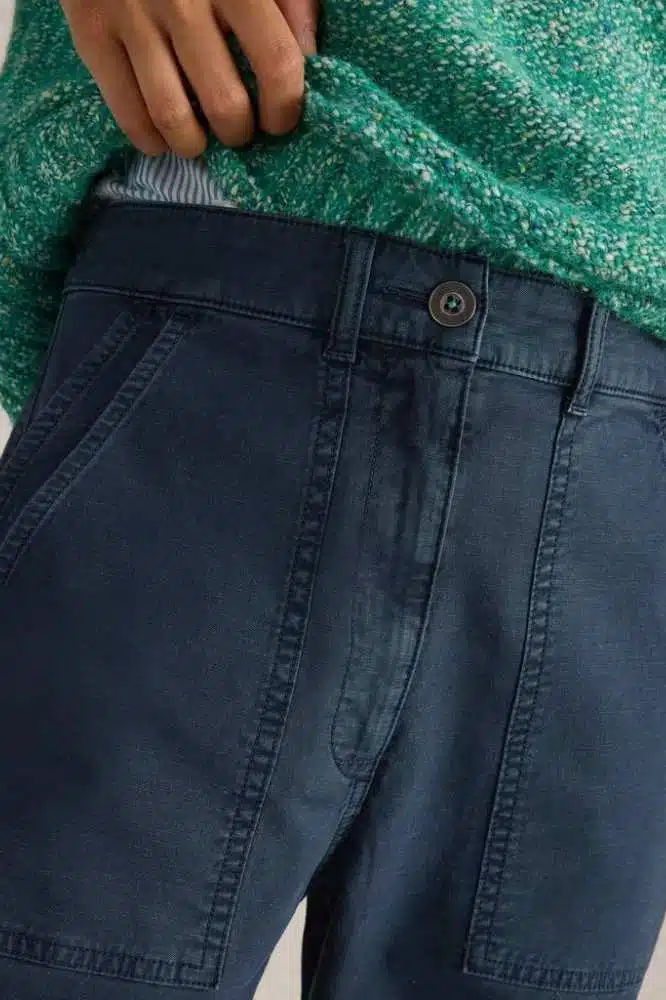 Deze chino is vervaardigd uit een bewuste mix van biologisch katoen, linnen en viscose, waardoor het niet alleen comfortabel is, maar ook een duurzamere keuze. Biologisch katoen wordt geteeld zonder schadelijke pesticiden en met minder waterverbruik, wat beter is voor het milieu én je huid. Linnen staat bekend om zijn ademende en sterke eigenschappen, terwijl LENZING™ ECOVERO™ viscose op een milieuvriendelijke manier wordt geproduceerd uit hernieuwbare houtbronnen. Een vleugje elastaan zorgt voor extra bewegingsvrijheid.