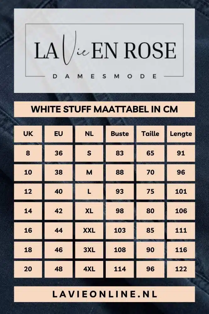 White Stuff is een geliefd Brits merk dat bekend staat om zijn eigentijdse, draagbare mode met een duurzaam karakter. Ze combineren stijlvolle ontwerpen met hoogwaardige materialen en ethische productiemethoden. Met aandacht voor detail en een focus op milieuvriendelijke materialen creëert White Stuff collecties die perfect aansluiten bij de moderne, bewuste consument.