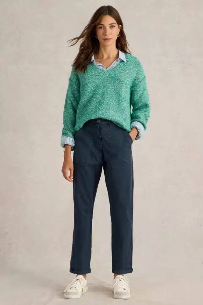 De Twister Chino Trouser is een veelzijdige must-have voor je garderobe. Draag hem met een luchtige blouse en sneakers voor een relaxte look, of combineer met een nette top en loafers voor een verzorgde uitstraling. Dankzij de zachte en soepele stof beweegt de broek moeiteloos met je mee, perfect voor drukke dagen waarin comfort en stijl hand in hand moeten gaan.