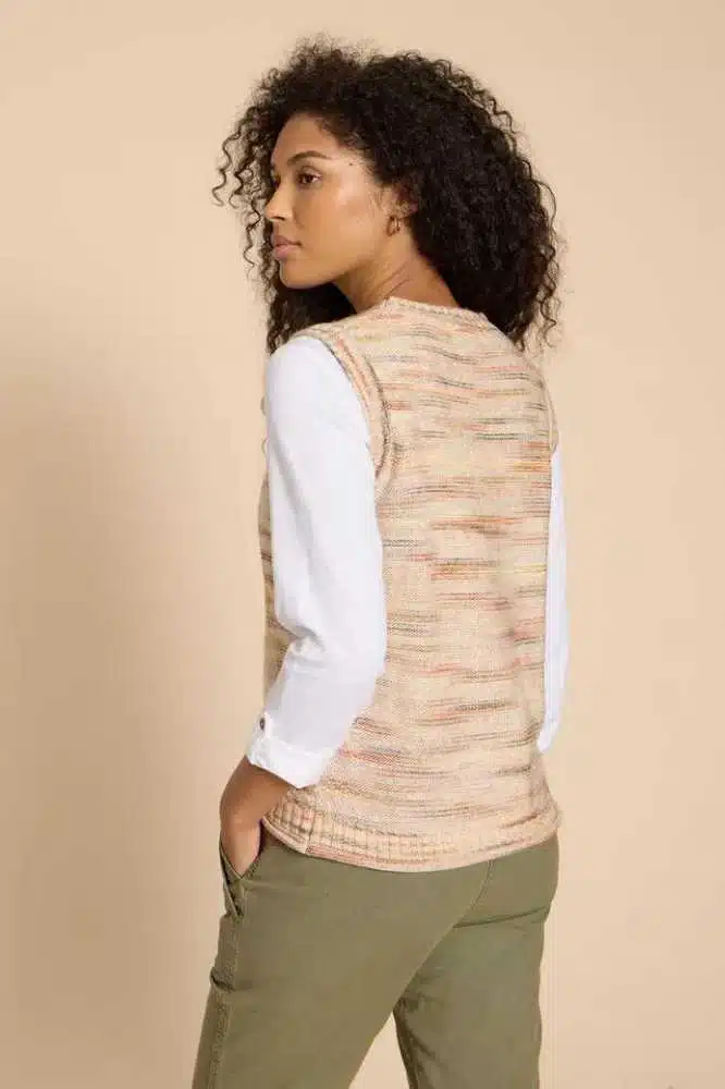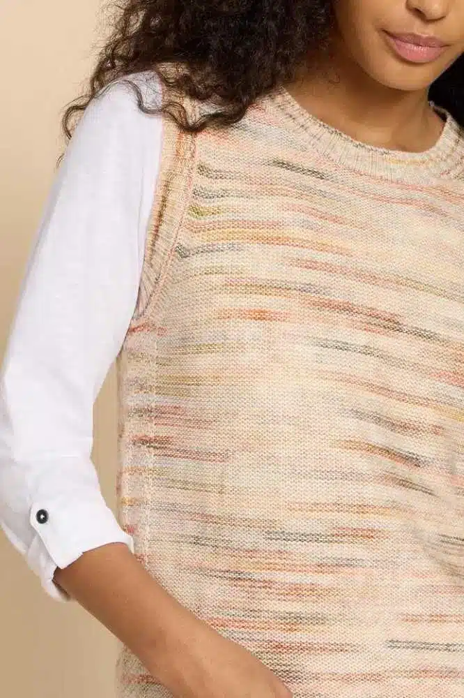 De Wickham Tank Ivory Multi van White Stuff is een mouwloze tank, gebreid met spacedye garen voor een veelkleurig effect. Zowel aangenaam voor het oog als voor de tastzin, belichaamt deze tank de perfecte combinatie van stijl en comfort.
