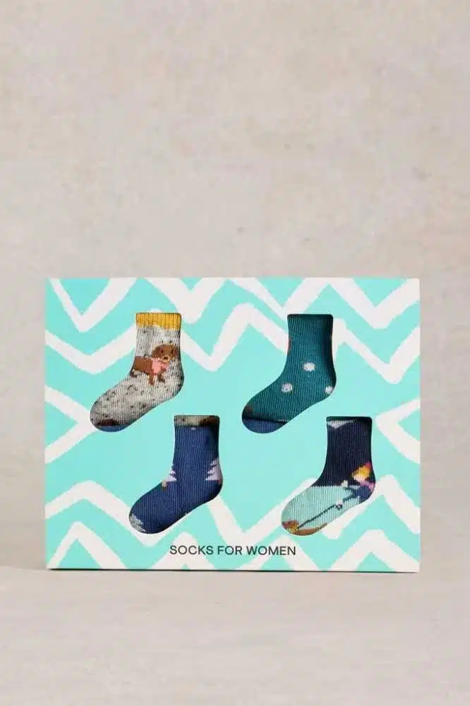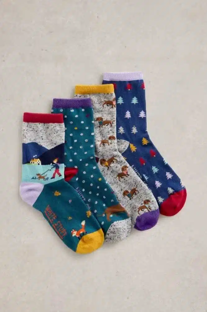 Maak je winterwandelingen comfortabeler en duurzamer met de Winter Walk Socks 4 Pack van White Stuff. Deze vrolijke sokken met schattige hondenprints zijn perfect voor elke winterse gelegenheid en voegen een speelse twist toe aan je outfit. De sokken zijn gemaakt van biologisch katoen en bieden een mix van comfort, stijl en duurzaamheid. Met hun zachte, ademende materiaal zijn deze sokken de ideale metgezellen voor koude dagen en lange wandelingen.