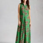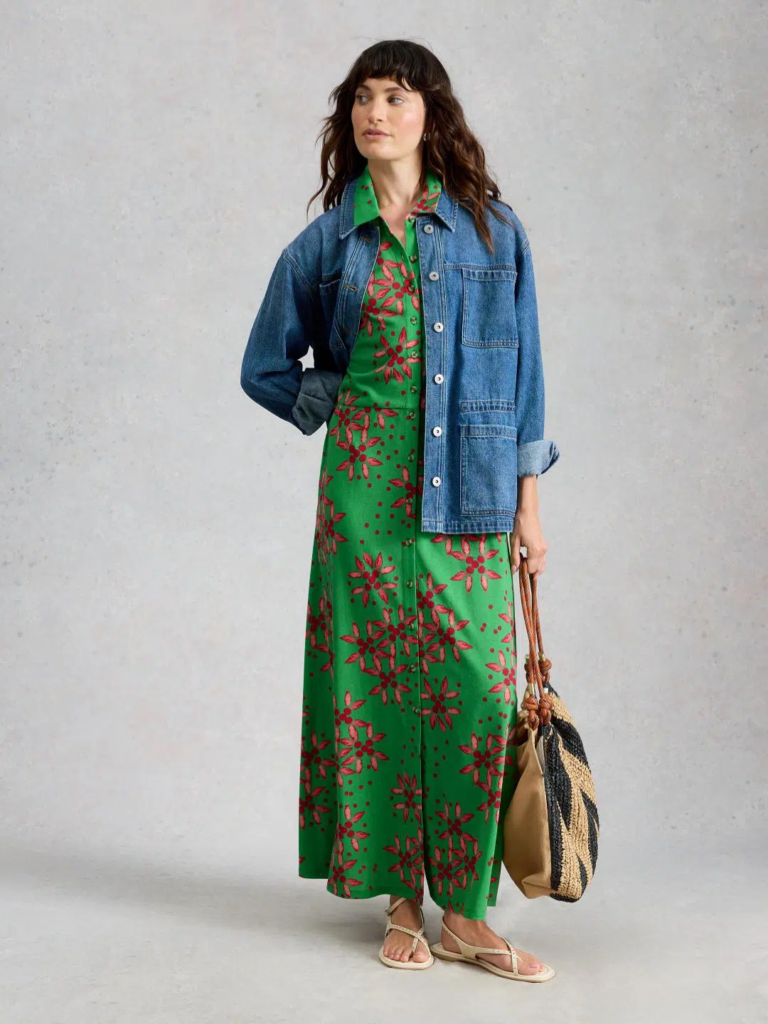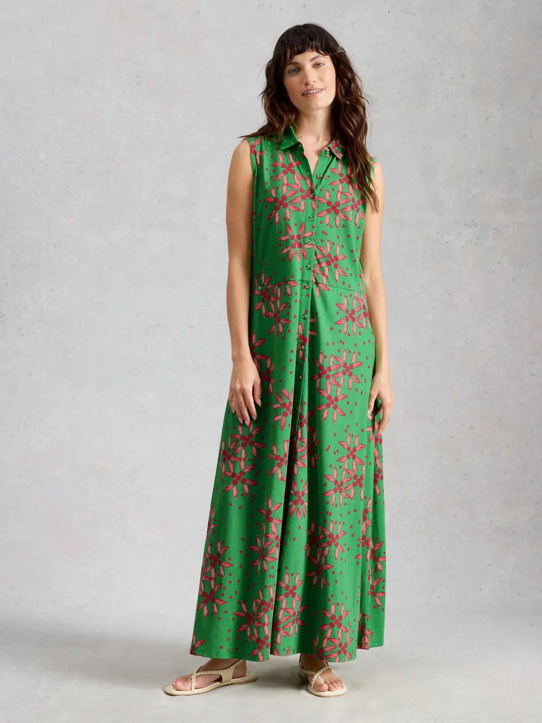 White Stuff Rua Maxi Jersey Shirt Dress Green Print