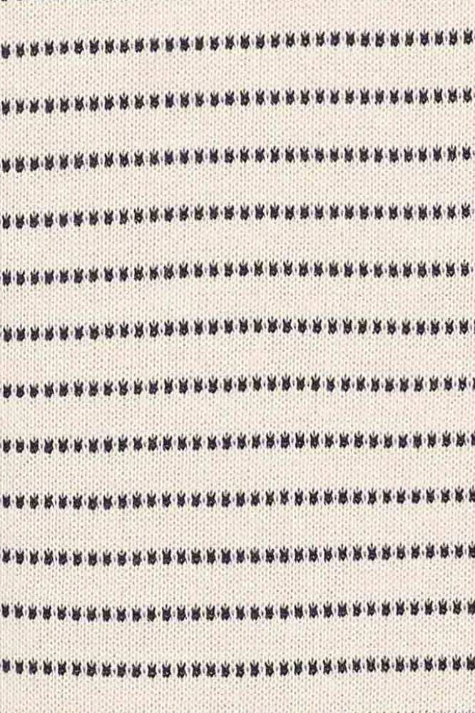 Om de kwaliteit van de Top Stripe Navy zo lang mogelijk te behouden, raden we aan om deze top te wassen in de wasmachine op een fijnwasprogramma bij maximaal 30°C. Leg de top liggend te drogen om te voorkomen dat het breisel uitrekt. Strijk de top op een middelhoge temperatuur. Het wordt aanbevolen om gebreide katoenen kledingstukken opgevouwen te bewaren om de vorm te behouden.