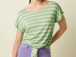 King Louie Aria Knot Shirt Marsy Linen Stripe Sprucestone Mint